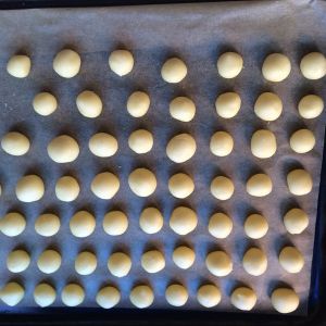 接下来,最重要的一步来啦!将面团揉长,左手拿面团,右手握住一小部分,快速、有力的往下揪,揪成一个一个的小剂子。 揪好的小剂子不需要揉圆,直接摆放好就可以。