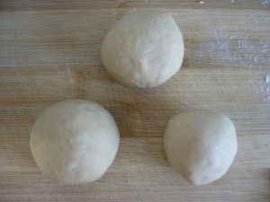 再把发酵好的面团再揉揉,可以撒些手粉一起揉,分成一小块一小块的,再逐个揉成光滑的面团
