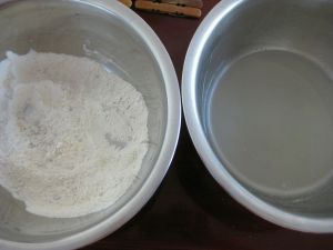 把面粉放入一个大盆里,放入白糖,放入和开的酵母