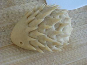 用剪刀在面团顶部剪出刺猬的刺,用牙签戳出眼睛。在温暖潮湿出醒发30分钟左右。冷水上锅,水开后转中火蒸20分钟左右。