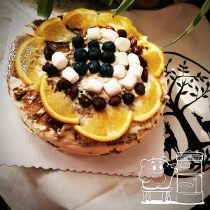 这是最后的成品 可以摆水果也可以不摆,可以在上面筛巧克力粉