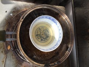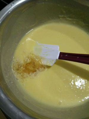奶酪和白糖融化后把搅拌好的蛋黄加进去搅匀!继续在电磁炉上隔水加热到80度以上!要给蛋黄杀菌!