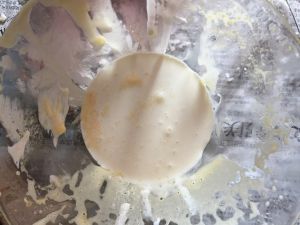 柠檬7ml和淡奶油67ml混合,轻轻搅拌变成固状
