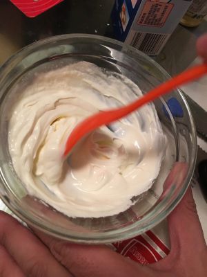一包剩下的183ml的淡奶油打发,稍微有倒三角不滴下来就行