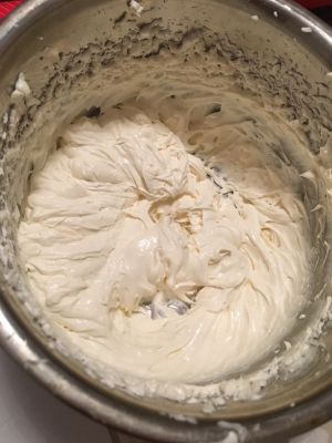 打马斯卡彭芝士,先用打蛋器划几下,然后用打蛋器打到顺滑