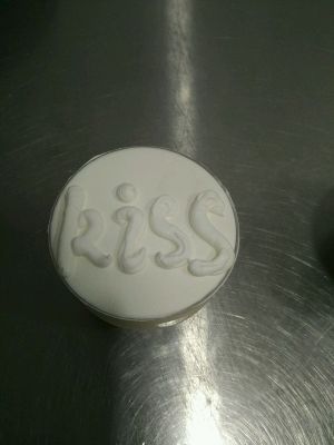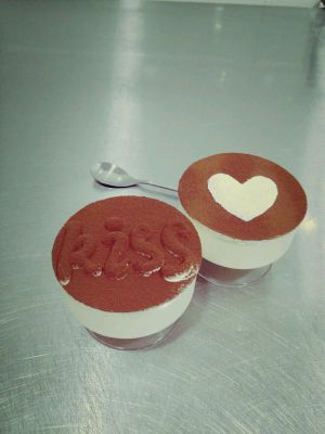 最后装饰的时候用奶油把杯子上面抹平!然后写上想写的字,撒上可可粉就完成了!