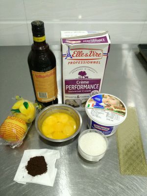 手指饼干在咖啡酒中快速浸湿放到容器底层,加一层奶酪,再加一层浸了咖啡酒的手指饼干,再加一层奶酪即可