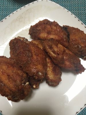 炸好的鸡翅,撒上孜然粉和辣椒粉即可。