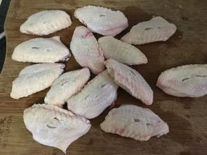 鸡翅洗干净,沥干水,在翅膀上用刀戳几个口子,入味