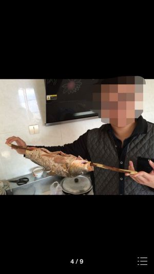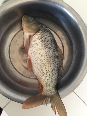 收拾好鲤鱼,从集市上买的,花了17元。嘿嘿。