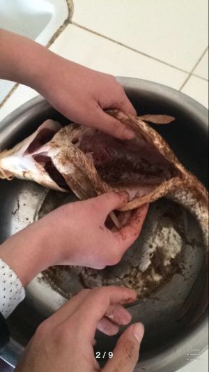 先准备一条少刺的鱼,我用的是金昌鱼。处理干净后表面抹盐,加葱姜片花椒粉料酒生抽腌制。正规的应该把鱼身贴着骨架片开,我担心自己刀工不好毁掉形状,所以就这样了