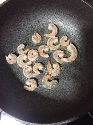 锅中倒入少量花生油,中火至7成热,加入虾仁,煎至变红,装盘备用!