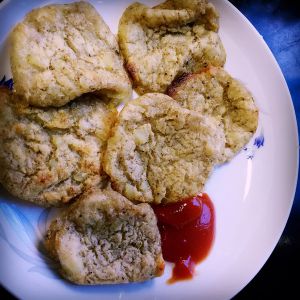 锅中放少量油,防止粘锅,将土豆泥弄成这样小饼,两面各煎40秒左右即可