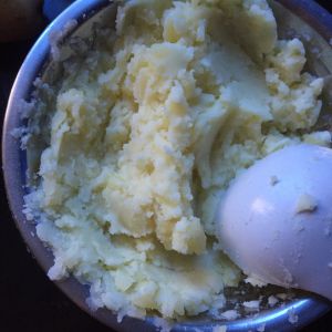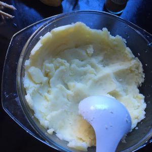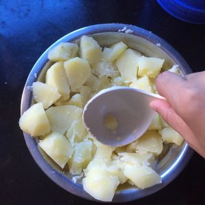 将蒸熟的土豆粘成泥