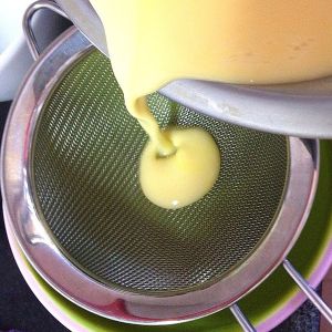 [重要步骤]蛋液过筛导入容器,这一步骤可不能偷懒,能不能烤出细腻布丁的关键就看它啦
