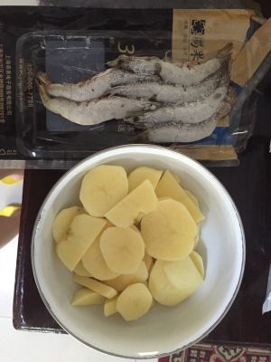 土豆切厚片,然后隔水煮,虾要去头,然后背切,将黑线拿掉,将虾壳剥了只留三分之一