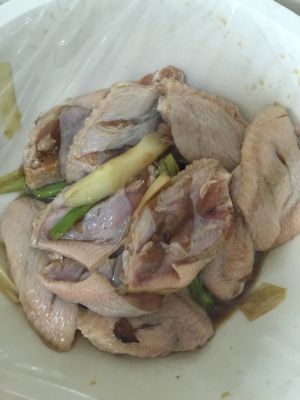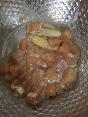 鸡胸肉切块用葱姜料酒胡椒粉盐腌制两小时