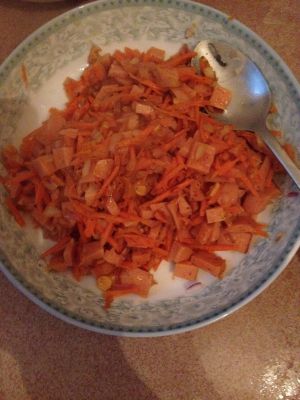 花生油炒熱 土豆雞蛋泥下鍋炒熟 我炒的太熟了 呵呵 太好吃了 還有股淡淡的香味