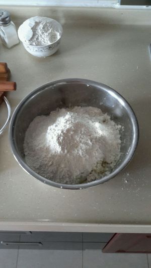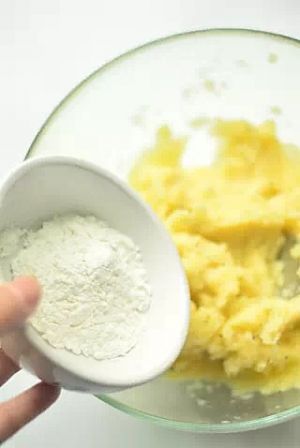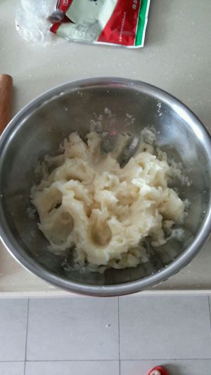 将土豆磨成泥,加入面粉、鸡蛋搅拌成糊状