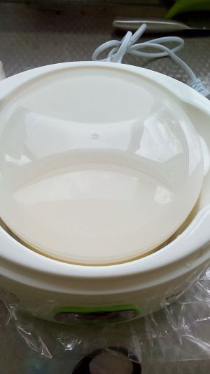 酸奶机里面倒入少量清水(以内胆放入后离上盖2厘米为宜),放入内胆通电8-12小时,时间越长做好的酸奶越酸,一般我做9小时酸度感觉恰好