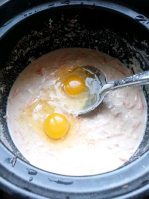 加入两个鸡蛋,放少许盐搅拌。