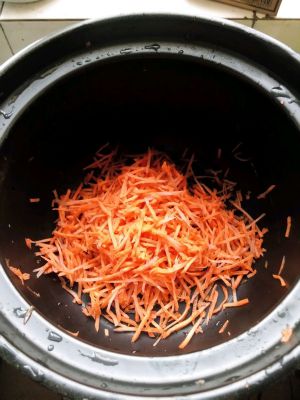 红萝卜切丝,炒熟