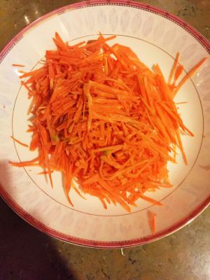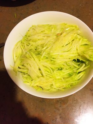 西葫芦挫丝,加盐拌匀静置半小时,让西葫芦丝出水