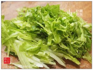 生菜挑选菜心部分,洗净,用淡盐水浸泡10分钟,沥干水分切成丝。
