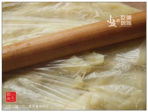 凉却后的土豆去皮,放进保鲜袋,用擀面杖压成土豆泥。