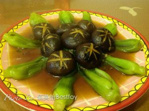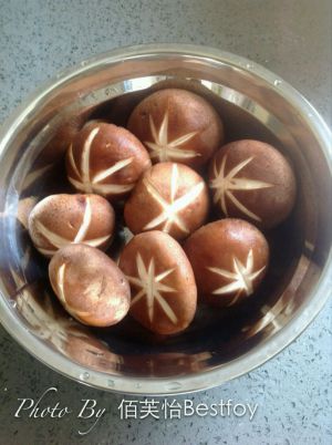 青菜洗净沥水备用,香菇洗净,用刀在上面切出星星图案备用