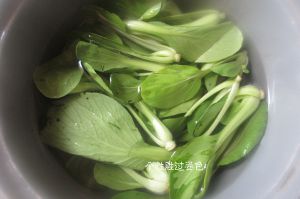 青菜洗净焯水后过冷水,攢一下多余的水分