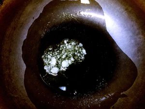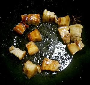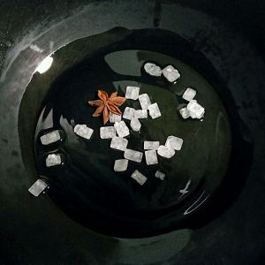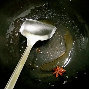 另取一锅,锅底少量油,加适量冰糖和一颗大料。
