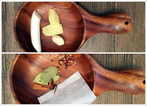 葱姜蒜备好,花椒桂皮香叶八角装入调料包