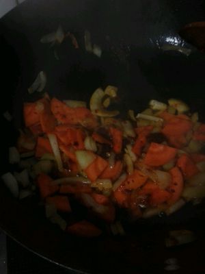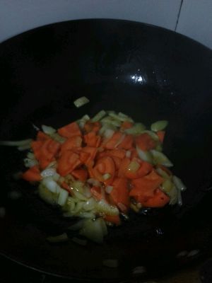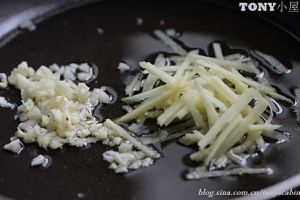锅中重新放少许油,放入蒜蓉和生姜丝,小火煸炒出香味。