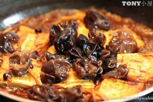 水淀粉少许,酱油1勺,醋2勺,白糖1勺调成鱼香汁,待汤慢慢炖,味入豆腐,勾芡入锅。