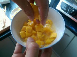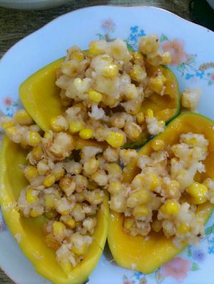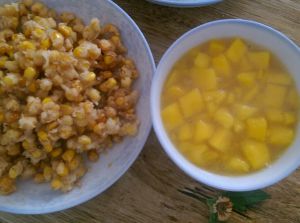 装盘,吃的时候把芒果汁浇在玉米粒上