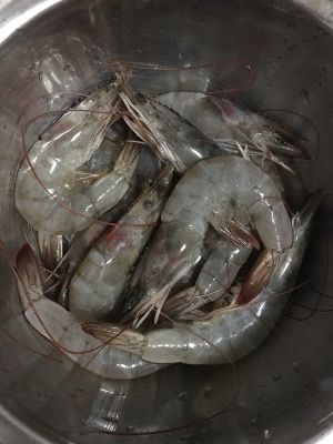 洗干净虾,取虾线,用料酒和生抽腌制一会。