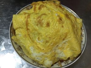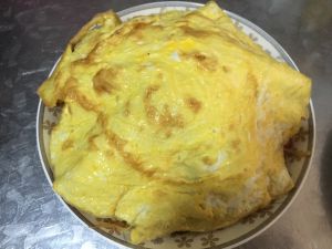 盖上提前摊好的鸡蛋饼。