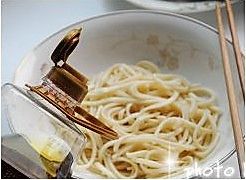 冲过凉水的乌冬面用花生油拌匀。