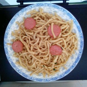 水煮沸,放面,加点盐,煮好后过凉水,加点香油拌一下