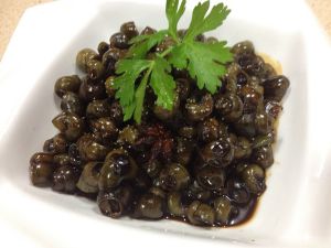 煮的过程中要翻炒,防止粘锅底,至田螺盖大部分脱落,放入少许糖,盐,生抽,耗油,再煮2分钟