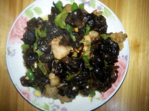 出锅的成品,我放的油比较多,因为木耳油少不好吃