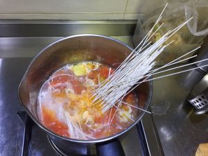 飘入鸡蛋,因为一个人吃就放了一碗水,如果锅里面还有面,容易把鸡蛋飘死