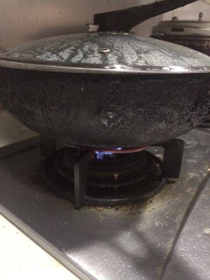 锅中放油,又热后加入冰糖,不断搅拌至完全融化。