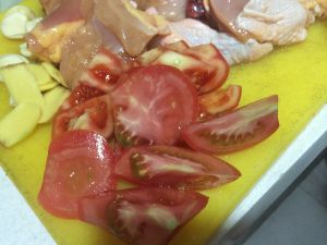 炒至收水(鸡本身会出水),然后放入蕃茄