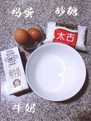 先准备好材料:鸡蛋、鲜牛奶、白糖。 材料很简单,准备完毕咱就可以开始了!