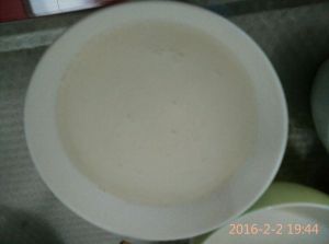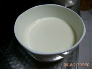 先把准备好的牛奶加热,记得不是煮滚。加成热的就行了!