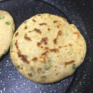 中火烧热锅,放饼,十几秒翻一次,这样受热均匀,成品好吃好看