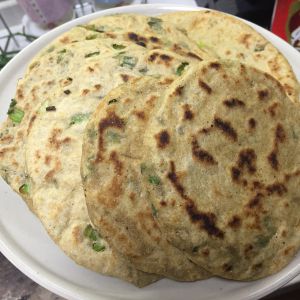 新鲜出锅的又香又酥又脆的猪油葱油饼