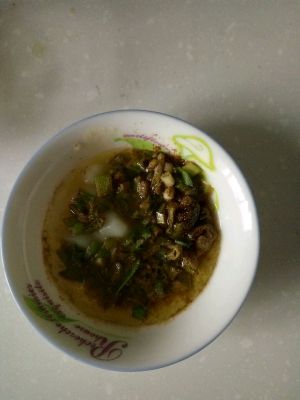 放一小部分葱花和葱白在碗中,淋上热油,葱香四溢